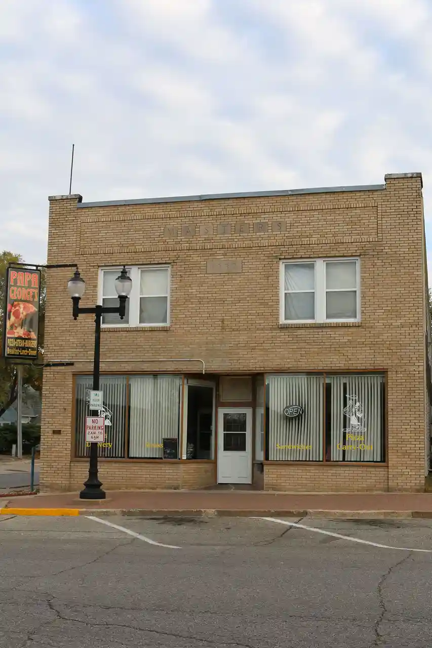 The Masters Building is a historic building located in Mount Pleasant, Iowa, United States. Completed in 1937, this two story, brick structure is an adaptation of the commercial Art Deco and Art Moderne styles. with The decorative elements are found in the brick patterning and cast concrete panels on the facade. Read more on Wikipedia