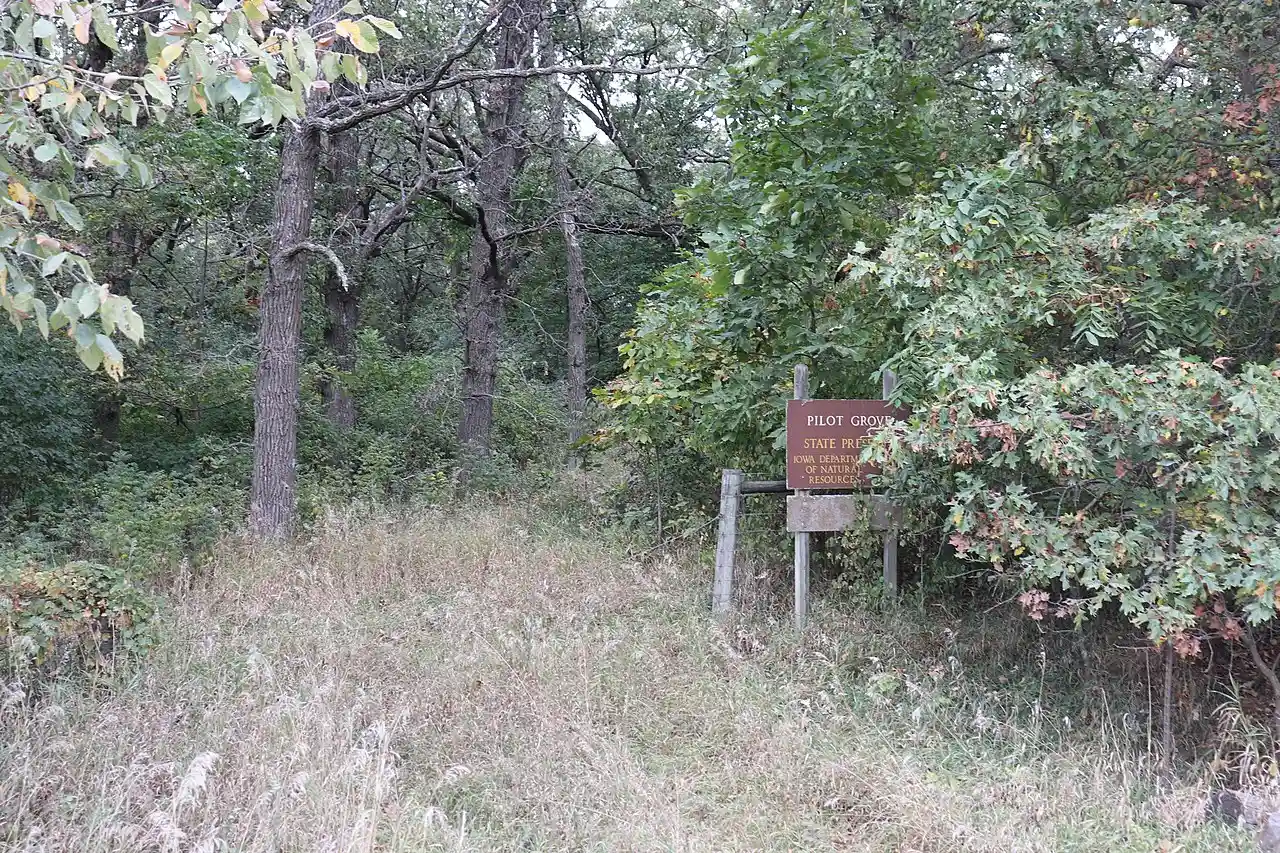 Pilot Grove State Preserve is a historic site located southwest of Williamsburg, Iowa, United States in rural Iowa County. The site is a wooded knoll surrounded by prairie between the North English River and Old Man's Creek. It consists of hickory, oak and walnut trees, along with patches of virgin prairie covered with bluestem, gramma, switch and Indian grasses, and a variety of native prairie wildflowers. There was no other timber in the area during the early years of Iowa's settlement, and it was a landmark for the pioneers traveling west across the state. with It was given its name because it gave people who traveled to and from Marengo, Iowa a sense of direction. A cemetery was established adjacent to the knoll in 1867. The site was listed on the National Register of Historic Places in 1977. The property had been owned by the Kelting family, who donated it to the Iowa Conservation Commission so that they could restore it and maintain its mid-19th-century condition at the time of Iowa's pioneer settlement. It was dedicated as a historical state preserve in 1980. Read more on Wikipedia