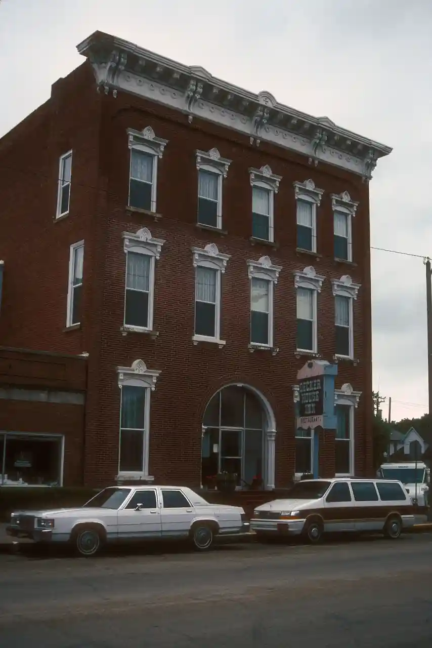 The Decker House Hotel is a historic building located in Maquoketa, Iowa, United States. James Decker, an entrepreneur from Watertown, New York held numerous real estate holdings in and around Maquoketa. He built the first Decker House, a frame structure, in 1856. After Maquoketa was named the county seat in 1873, Decker decided to replace it. The three-story, brick, Italianate building was designed by Watertown architect W.W. Tucker. Its decoration is limited to the north and east elevations. Noteworthy, is its metal cornice and window hoods. It opened in May 1878, and it had two other competitors in town at that time. with Following his death in 1881, James Decker's son Leonard took over his holdings in New York and Iowa. He moved into the Decker House in 1885 and died there in 1900. The building has subsequently lost its entrance porch, original front doors and the pediment over the cornice. It was listed on the National Register of Historic Places in 1978. Read more on Wikipedia
