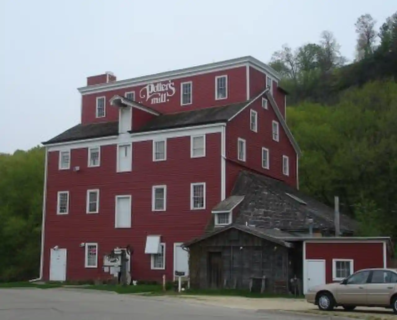 Potter's Mill is a restaurant and bed and breakfast establishment located in Bellevue, Iowa. The structure was formerly a gristmill, being the oldest in the state of Iowa, and as such it has earned national recognition. Potter's Mill is on the National Register of Historic Places, as well as being named a point of interest in the Silos & Smokestacks National Heritage Area. Read more on Wikipedia