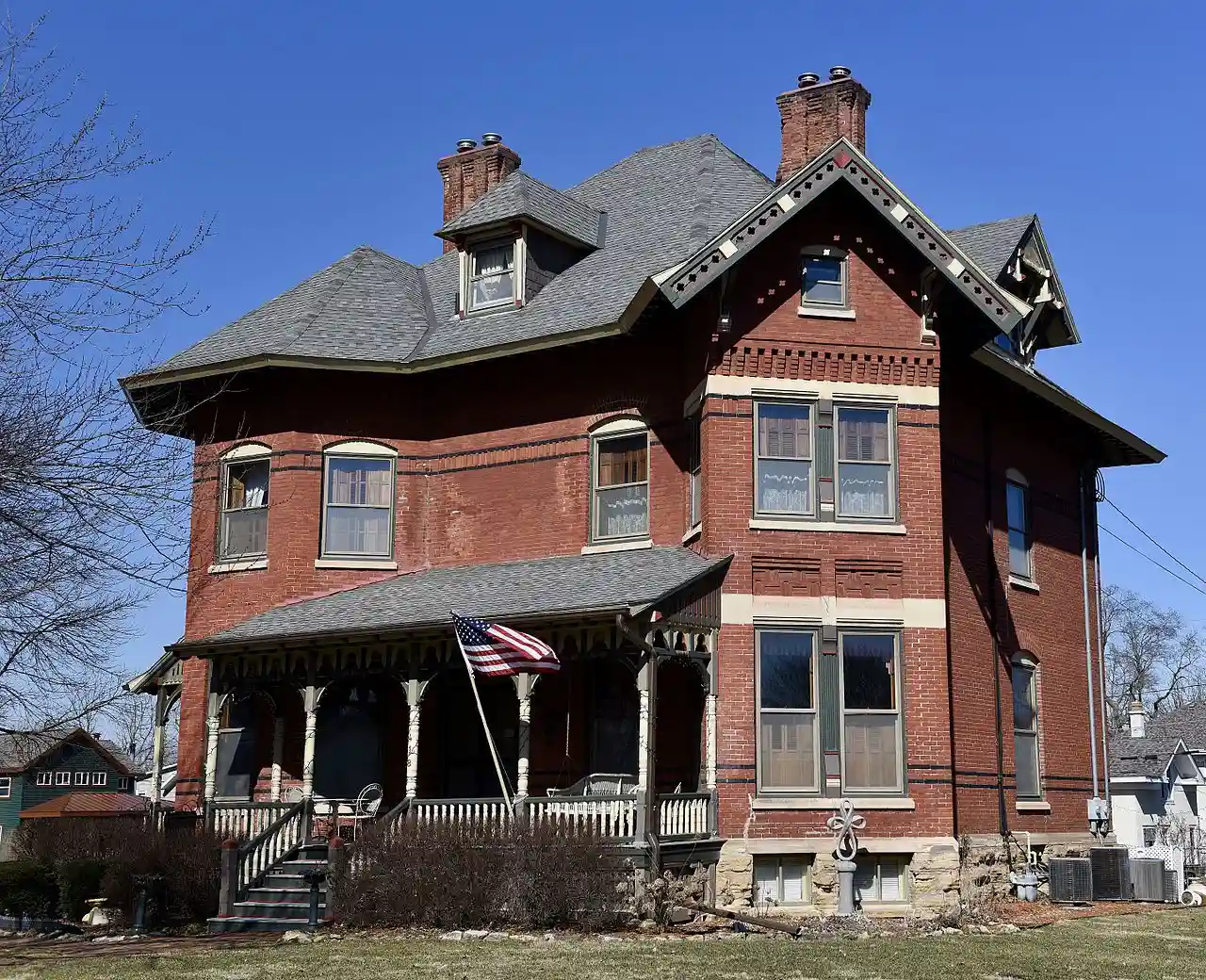 The J.E. Squiers House, also known as the Squiers Manor Bed and Breakfast, is a historic building located in Maquoketa, Iowa, United States. The architectural and historic significance of this house is attributed to its being "a well-preserved example of late nineteenth century domestic architecture in Maquoketa's most prominent residential neighborhood and for its association with the life and career of James Emery Squiers, a prominent local businessman." with Built in 1882, the 2-story brick house features elements consistent with the Queen Anne and Stick styles. It follows a central hall floor plan with two rectangular projecting bays, a three-sided bay window, a kitchen addition on the back, and a hipped roof with intersecting gable sections. Read more on Wikipedia