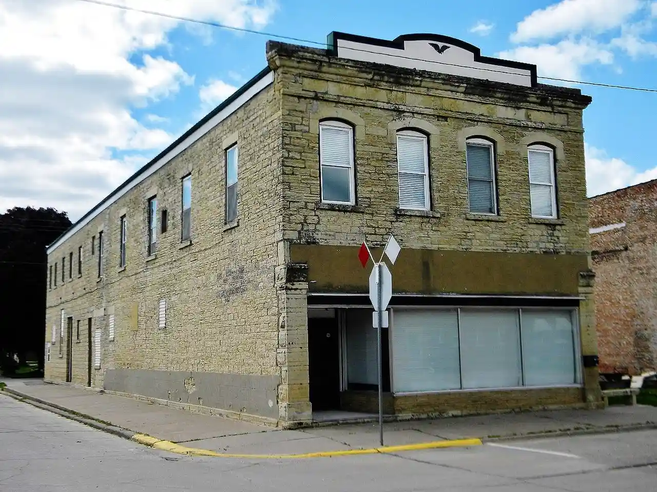 The Kucheman Building is a historic commercial building located in Bellevue, Iowa, United States. It is one of over 217 limestone structures in Jackson County from the mid-19th century, of which 20 are commercial buildings. The two-story structure was built in 1868 to house Kucheman & Son, a dry goods and clothing store. The second floor has housed an Opera Hall and City Hall. An addition was built onto the rear of the building sometime between 1902 and 1914. The building features four bays on its main facade, which is capped by a stone cornice with arched metal pediment. The stone blocks used in its construction vary somewhat in shape and size, and they were laid in courses. It also features dressed stone window sills and lintels. What differentiates this building from the others is its segmental arched windows. with The second floor windows on the front have simple stone hoodmolds. The building was listed on the National Register of Historic Places in 1991. Read more on Wikipedia