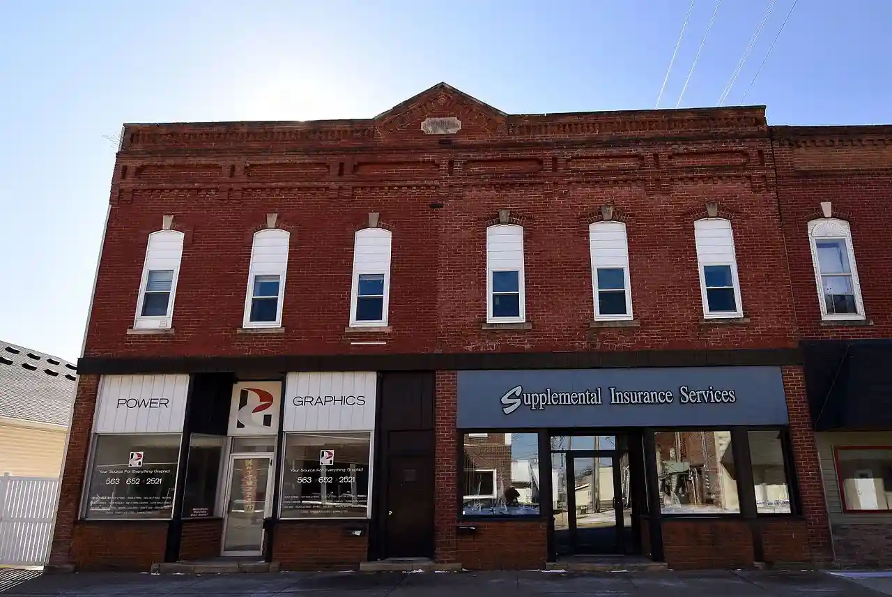 The New Era Building, also known as the Dobson Town Clock Building, is a commercial building located in Maquoketa, Iowa. The Late Victorian structure was designed by John Lake and built in 1890. The building was owned by Dr. A.B. Dobson, a "clairvoyant physician who treated patients by mail." Patients were asked to send one dollar and a lock of hair, which would enable him to cure their ills. The building's clock tower was built separately and was removed for scrap to help in the war effort during World War II. Read more on Wikipedia