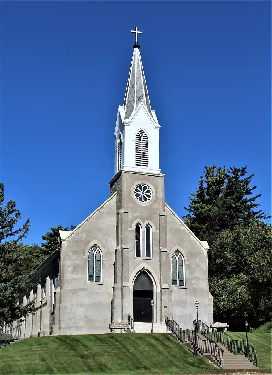 Saint Donatus Catholic Church is a parish of the Archdiocese of Dubuque located in the Jackson County, Iowa community of St. Donatus. The patron of the parish and the town is Saint Donatus of Muenstereifel, whose cultus is popular in Luxembourg and the Rhineland. The parish complex includes a church building, rectory, chapel and cemetery. They are all contributing properties in the Village of St. Donatus Historic District, which was listed on the National Register of Historic Places in 1989. Read more on Wikipedia