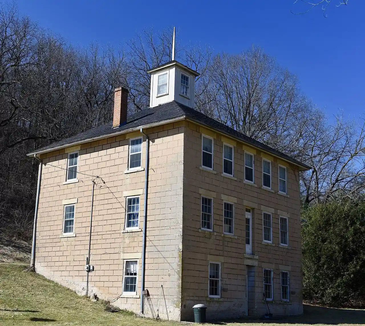 Upper Paradise is a historic building located west of Bellevue, Iowa, United States. It is one of over 217 limestone structures in Jackson County from the mid-19th century, of which 101 are houses. It is one of 12 houses with a hip roof, and it is one of two that are capped with a belvedere. with It was built in 1849 into the side of a hill, so the south elevation has three floors and the north elevation has two. It features limestone sills and lintels. Another unusual feature of this house is that it was covered in a thick layer of stucco. The other stone houses in the county that were stuccoed were only given a thin layer. The house was listed on the National Register of Historic Places in 1991. Read more on Wikipedia