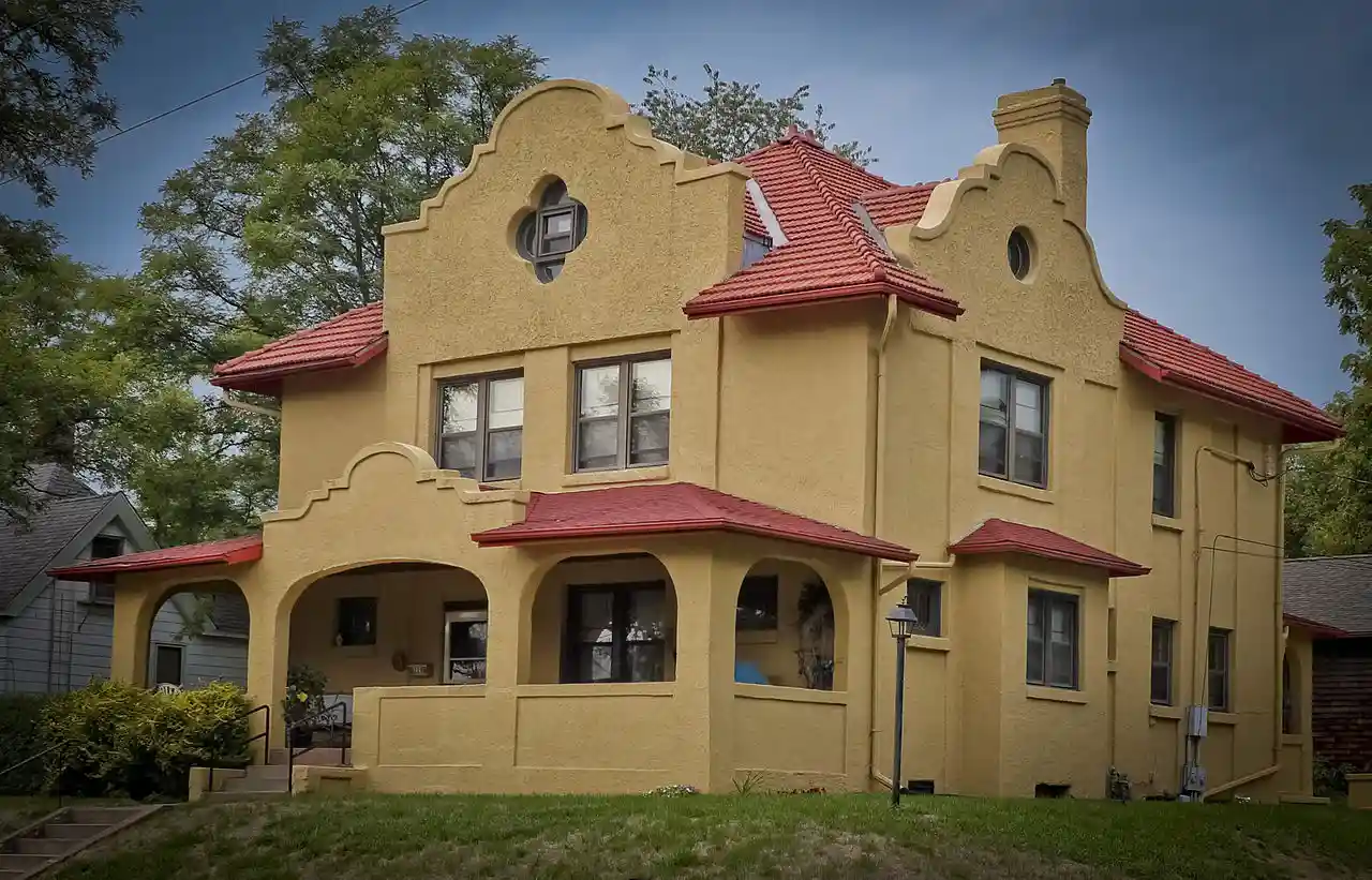 The Arthur Hillyer Ford House is a historic building located in Iowa City, Iowa, United States. Ford was a Chicago native who worked as an electrical engineer before becoming a college professor. He eventually became professor of electrical engineering at the University of Iowa, and is credited with inventing glare-less automobile headlights. with He hired local architect Orville H. Carpenter to design his Mission Revival house. It features a symmetrical composition, wall dormers with scalloped parapets, a quatrefoil window, stuccoed walls, red clay tile roof with wide overhanging eaves, and a full-length front porch with square piers and flattened arches. The American Craftsman influence is found on the interior, especially in the fireplace inglenook. The house was individually listed on the National Register of Historic Places in 1986. In 1994 it was included as a contributing property in the Brown Street Historic District. Read more on Wikipedia