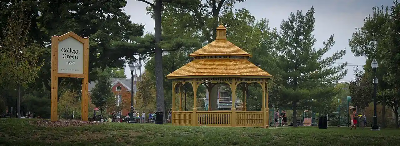 The College Green Historic District is a nationally recognized historic district located in Iowa City, Iowa, United States. It was listed on the National Register of Historic Places in 1997. At the time of its nomination it consisted of 47 resources, which included 37 contributing buildings, one contributing site, and nine non-contributing buildings. with This neighborhood in the central part of the city surrounds a square-block park called College Green, from which it derives its name. The park, which is the contributing site, is found on the earliest maps of Iowa City. While the earliest houses in the district were built in the 1860s, most were constructed between 1890 and 1920. No one architectural style dominates here, but the district contains a variety of styles that were popular in the late 19th and early 20th centuries. This is one of three areas in the city where the fraternities and sororities associated with the University of Iowa are located. The Thomas C. Carson House (1875), which now houses a sorority, is individually listed on the National Register of Historic Places. Read more on Wikipedia