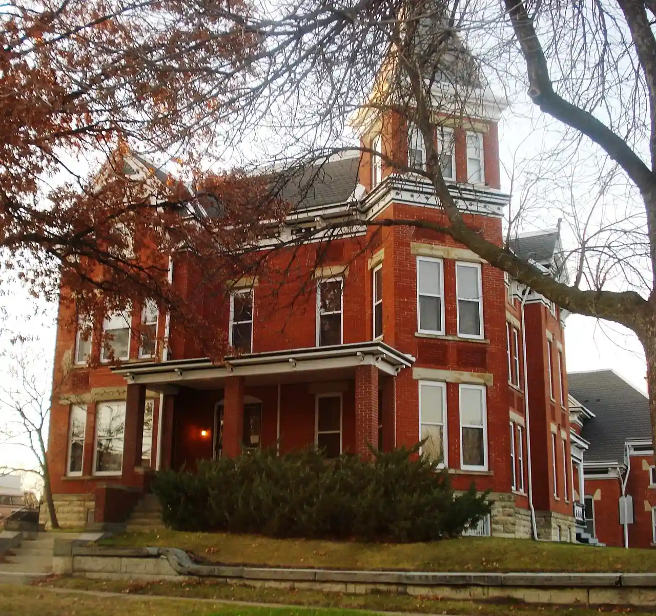 The A. T. Averill House is a historic building located in Cedar Rapids, Iowa, United States. Local architects Sidney Smith and W.A. Fulkerson designed this 2-story, brick Late Victorian home. It was completed in 1886 for farm implement dealer Arthur Tappan Averill. This is a more restrained version of the High Victorian style. with The house features a truncated hip roof, a 2-story polygonal bay, and a rectangular tower set on the diagonal. The carriage house/barn behind the house is of a similar design, but older. The house was listed on the National Register of Historic Places in 1978. Read more on Wikipedia