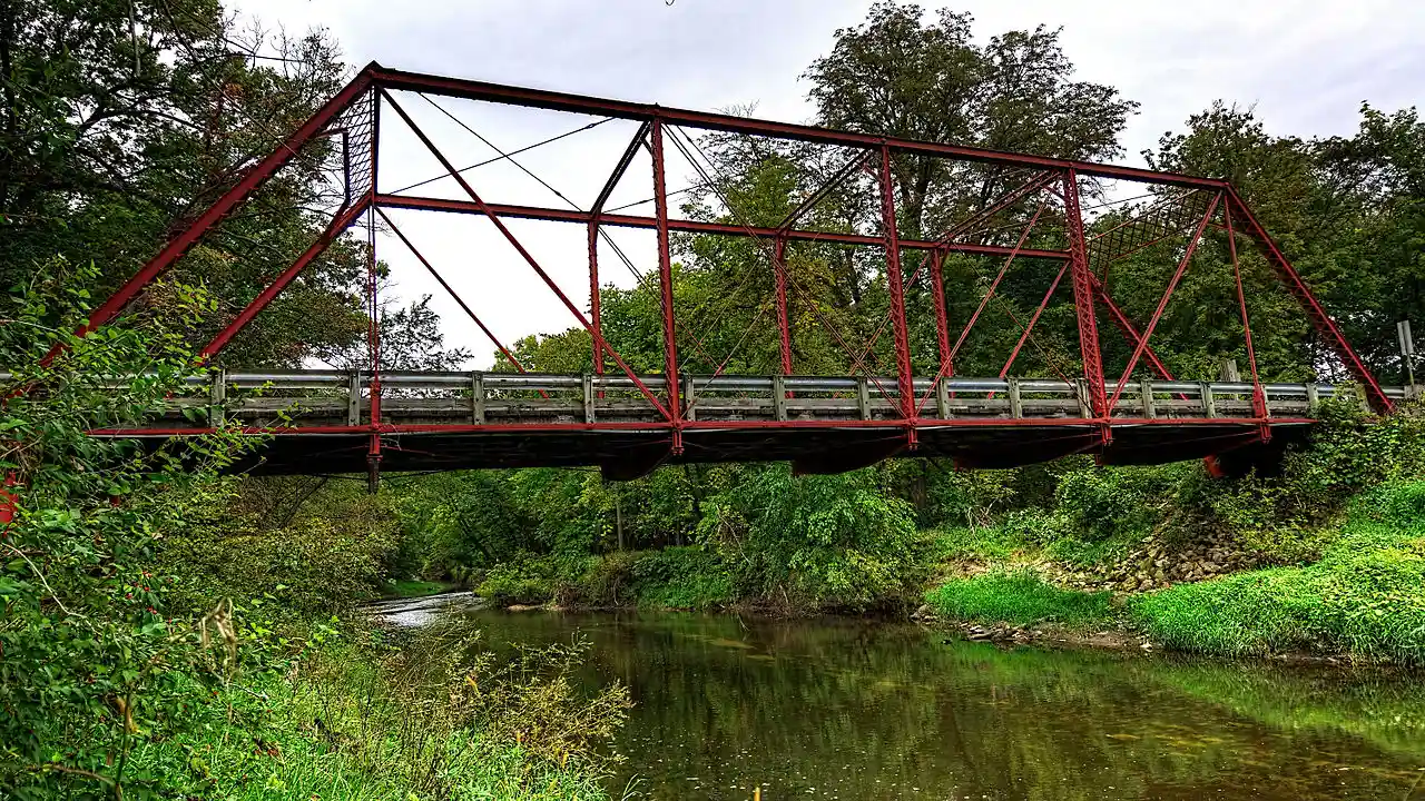 The Bertram Bridge, also known as the Ely Street Bridge, was a historic structure located near the town of Bertram in rural Linn County, Iowa, United States. The metal 5-panel pinned Pratt through truss bridge was built in 1891. It was designed by the J.E. Jayne and Son Bridge Company of Iowa City. The bridge had two main spans and two approach spans. The whole structure was and the roadway was wide. The bridge was listed on the National Register of Historic Places in 1998 as a part of the Highway Bridges of Iowa MPS. Read more on Wikipedia