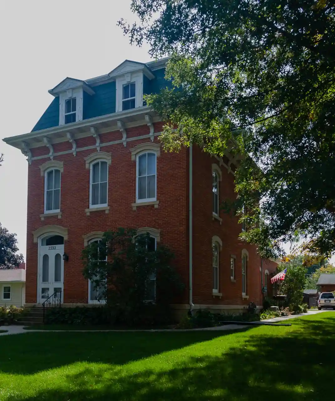 The Joseph P. Mentzer House is a historic building located in Marion, Iowa, United States. An Ohio native, Mentzer made his fortune as a merchant and as a banker in Marion. with After his business partnership dissolved in 1865, he turned his attention to a farm he bought on the edge of town. He built this 2½-story Second Empire house in 1868. It features a mansard roof with bracketed eaves and a single-story rear wing. The house remained in the Mentzer family into the 1930s. At one point it had been converted into three apartments. It was listed on the National Register of Historic Places in 1982. Read more on Wikipedia