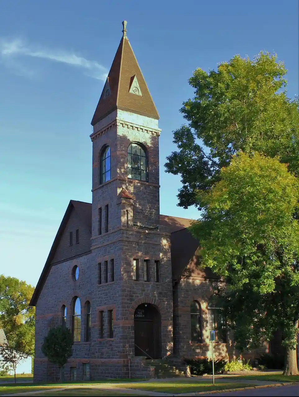 Rock Rapids United Methodist Church, formerly known as First Methodist Church, is located in Rock Rapids, Iowa, United States. The church building is significant for the use of blue-gray and red granite used in its construction. with It was designed by Sioux Falls, South Dakota architect Joseph Schwartz utilizing the Richardsonian Romanesque style. Completed in 1896, it is the second church building for a congregation founded in the 1870s. The blue-gray granite quarried near Sioux Falls is the main building material, and it is laid in a random ashlar pattern. The red granite was acquired from the receiver of a bankrupt packing plant which had begun, but did not complete, a new stone building. It is used for the trim, especially in the voussoirs of alternating colors. The building also features a tall corner bell tower. The pipe organ was ordered from the Hinners Organ Company of Pekin, Illinois in January 1905 at a cost of $1,960 (). An addition was added to the south side of the church in 1966. The church was added to the National Register of Historic Places in 1978. Read more on Wikipedia
