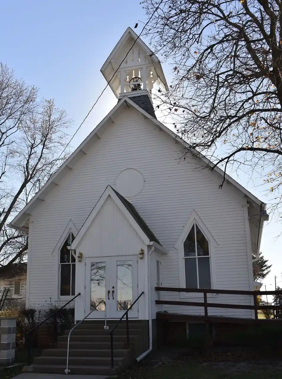 The Rose Hill Methodist Episcopal Church is a historic building located in Rose Hill, Iowa, United States. The frame building was built in 1879 in the Gothic Revival style. It is the only 19th-century church building that remains in its original location in the town. The pointed arch windows are all at 45 degree angles, demonstrating the limited carpentry experience of the church members who built the structure. It was listed on the National Register of Historic Places in 2003. Read more on Wikipedia