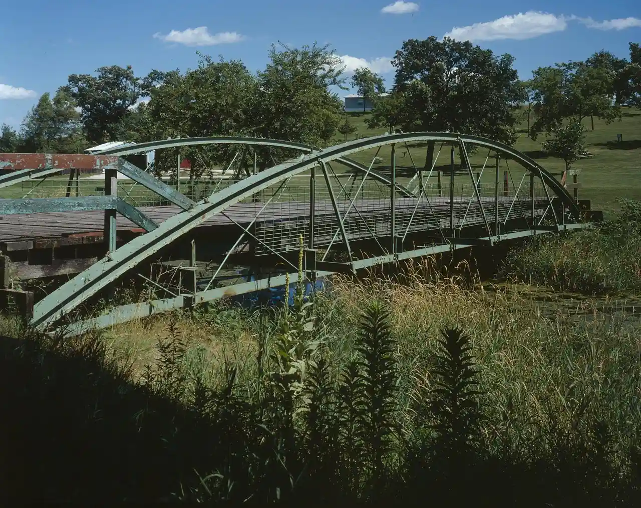Nodaway River Bridge is located west of Grant, Iowa, United States. It spans an arm of a small pond in Pilot Grove County Park for . The Montgomery County Board of Supervisors accepted a petition from S. M. Smith to build a bridge over the Nodaway River south of Grant in June 1876, and another bridge over the Nishnabotna River at the same time. The county contracted with the Missouri Valley Bridge & Iron Co. of Leavenworth, Kansas, to design and build the Nodaway River bridge, which was completed later the same year for $1,000. The bridge consists of a single-span Bowstring arch-truss with a wood deck. It remained in use as a road bridge until 1968, when it was moved to the park for use as a pedestrian bridge. Even though it is no longer in its historic location and used for its historic function, the bridge was listed on the National Register of Historic Places in 1998 as an example of early transportation development in Iowa. Read more on Wikipedia