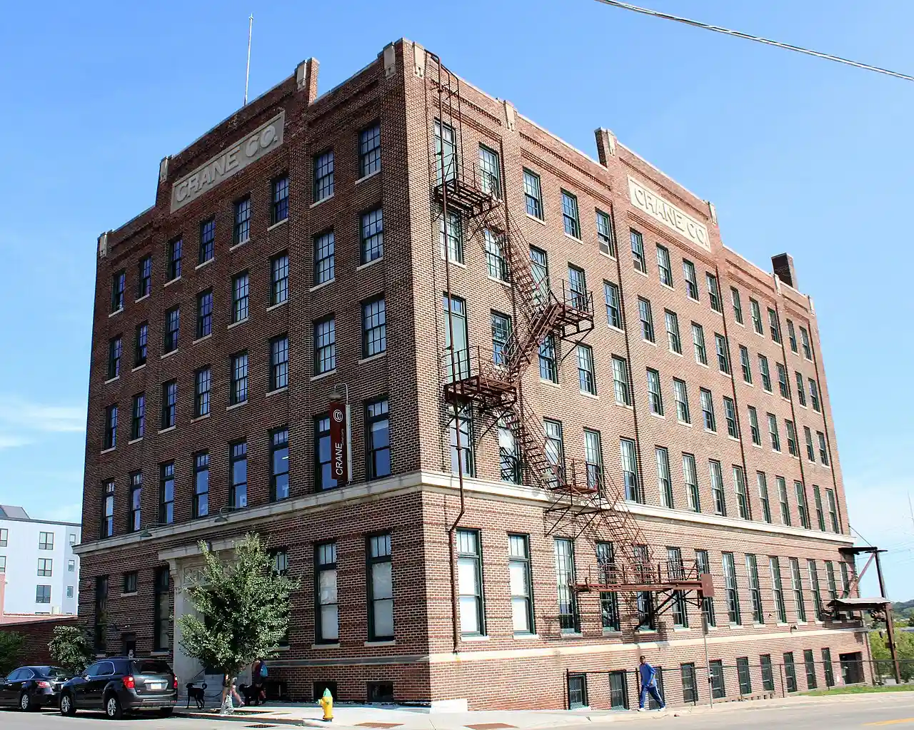 The Crane Building, also known as C.E. Erickson Co., in Des Moines, Iowa, United States. Crane Company was a plumbing and heating supplier and manufacturer that had this six-story manufacturing facility built in 1916. It was designed by the Des Moines architectural firm of Sawyer and Watrous. It is a utilitarian structure that is significant for its "thoughtful design" that utilizes elements of the Chicago School and a refined style. with It was listed on the National Register of Historic Places in 2001. In 2013, the vacant building was renovated into 36 lofts targeted at artisans and costing 8 million dollars. Read more on Wikipedia