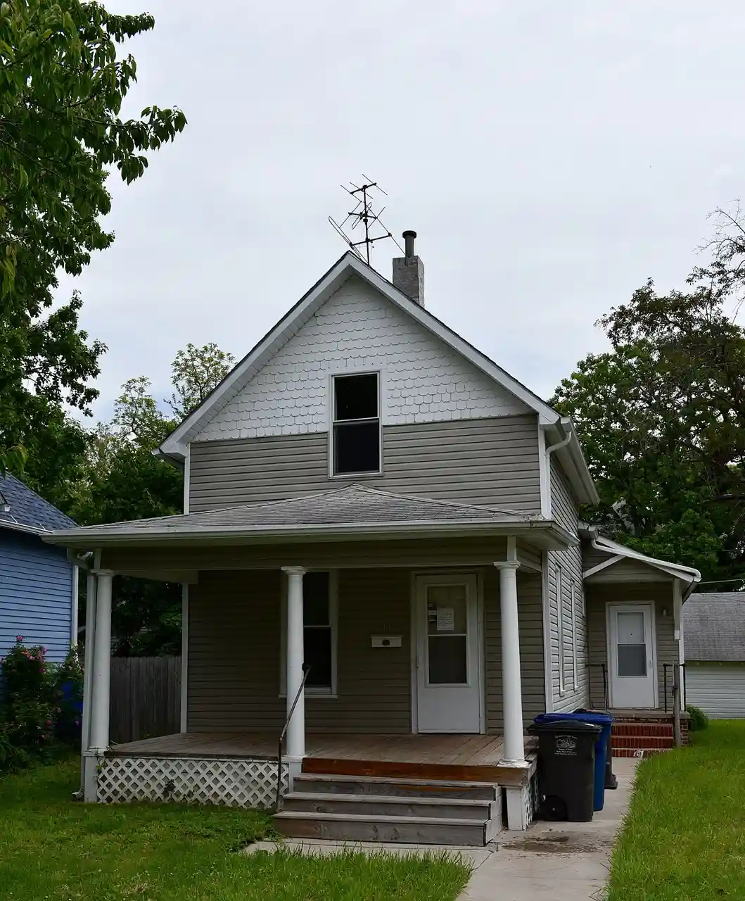 The John P. Simmons House is a historic building located in Des Moines, Iowa, United States. This simple 1½-story frame dwelling features a gable front, rectangular plan, and a hipped roof front porch. The property on which it stands is one of ten plats that were owned by Drake University. The house's significance is attributed to the effect of the University's innovative financing techniques upon the settlement of the area around the campus. with Delos Cutler, one of the organizers of the University Land Company, acquired this lot and the one next to it in 1887. He sold them to F.F. Odenweller the following year. John P. Simmons bought this lot 25 in 1894, the same year the house was built. He either sold or mortgaged it to University Bank in 1900. The house was listed on the National Register of Historic Places in 1988. Read more on Wikipedia