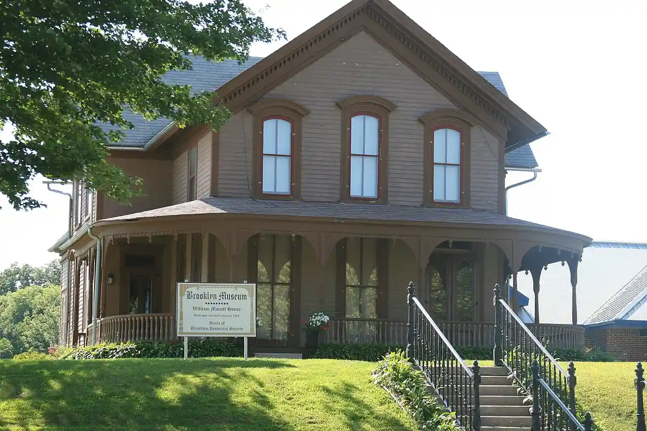 The William Manatt House, also known as the Brooklyn Historical Museum, is a historic dwelling located in Brooklyn, Iowa, United States. It is associated with the settlement of the town. Manatt and his father Robert moved from Holmes County, Ohio and settled in Poweshiek County in 1848. The farmstead they developed eventually became the city of Brooklyn. His father laid out most of the town in 1855. William sold property to the Mississippi and Missouri Railroad for a $1, and it reached Brooklyn in 1862. He granted land to the Chicago, Rock Island and Pacific Railroad in 1869. Manatt owned several businesses in town, which were run by various family members, and he owned an estate that grew to of land. He had this house built in 1869 on property that included a large barn, carriage house and pasture land. Manatt died in the house in 1906. His widow Roxann and two of his daughters, Thursia and Nellie, lived here until they died or moved out late in life. His youngest son Coe bought the house in the mid-1950s when Nellie moved out, and donated it to the city of Brooklyn before he died in 1962. It housed the Brooklyn Public Library until 1999, and since then the Brooklyn Historical Museum. The two-story frame structure features Italianate elements, especially the tall, segmentally arched windows and hooded crowns. Dental molding is found on the cornice. The porch that encircles half of the house is not original. The house was listed on the National Register of Historic Places in 1997. Read more on Wikipedia