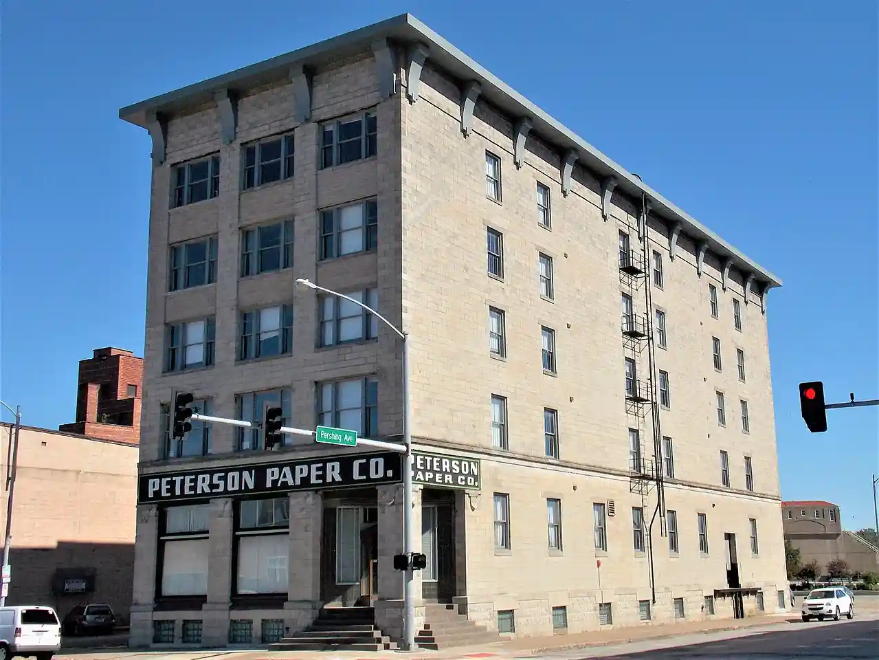 The Davenport Bag and Paper Company Building, also known as the Peterson Bag and Paper Building, is a historic building located in downtown Davenport, Iowa, United States. It was listed on the Davenport Register of Historic Properties in 2012. (Click on "Historic Preservation Commission" and then click on "Davenport Register of Historic Properties and Local Landmarks.") In 2018 it was individually listed on the National Register of Historic Places, and in 2019 it was included as a contributing property in the Davenport Motor Row and Industrial Historic District. Read more on Wikipedia