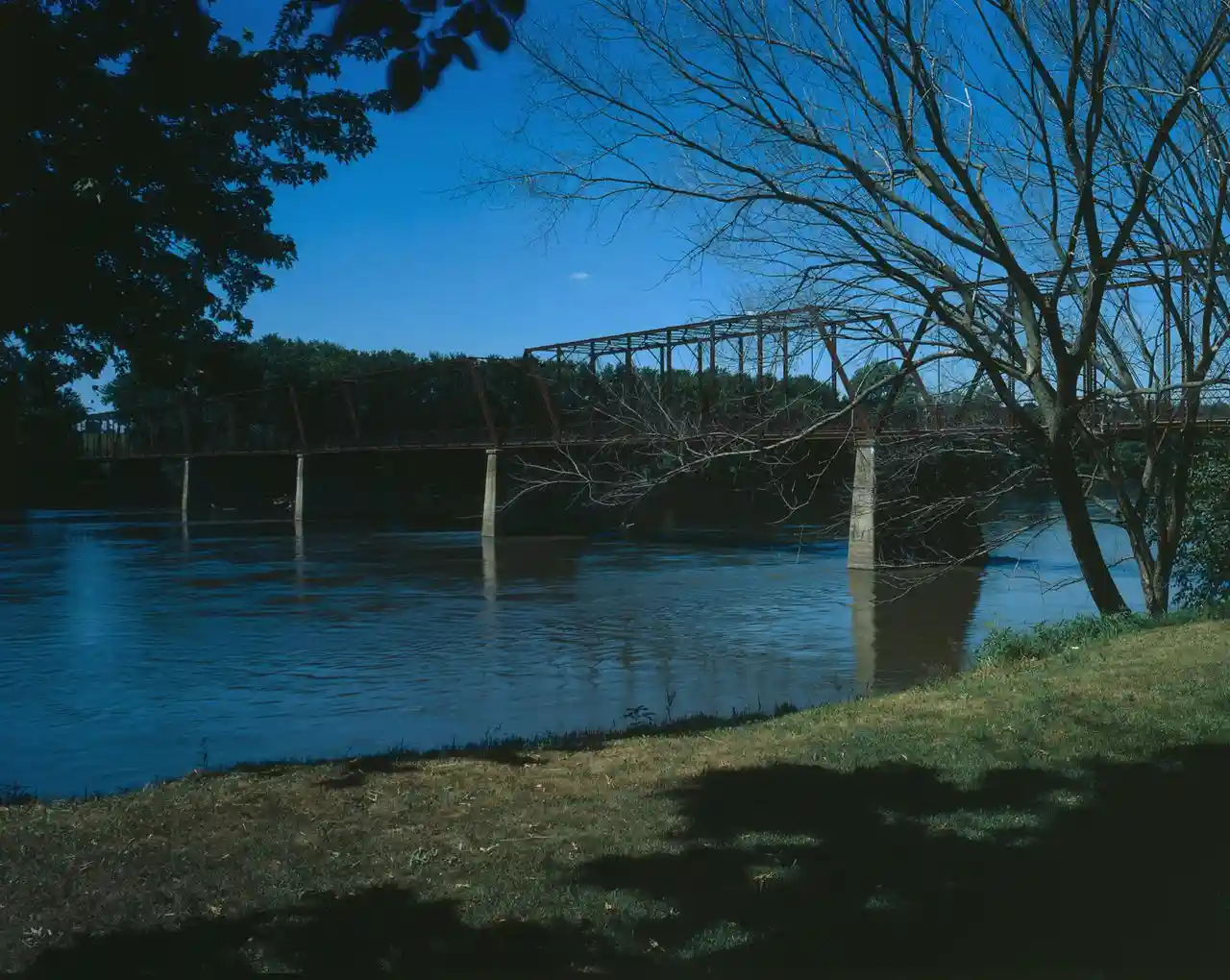 The Kilbourn Bridge is located just south of Kilbourn, Iowa, United States. It carried traffic on Lark Avenue over the Des Moines River for . In 1890 the Van Buren County Board of Supervisors contracted with the Western Bridge Company of Chicago to build a bridge at the Kilbourn ferry crossing. It was destroyed in a flood in 1903. The Board of Supervisors put off replacing the bridge until 1907, and then all the proposals came over the $20,000 limit. The following the year they removed the limit. The six-span bridge was designed by the Iowa State Highway Commission (ISHC), and built by the Ottumwa Supply and Construction Company of Ottumwa, Iowa. It was the first large-scale engineering project undertaken by the newly formed ISHC. The Kilbourn Bridge was listed on the National Register of Historic Places in 1998. Read more on Wikipedia