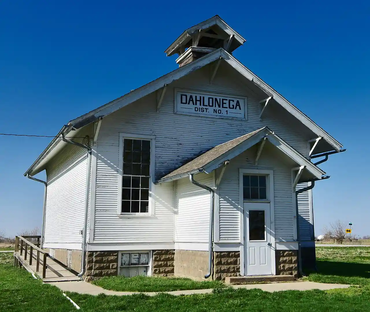 Dahlonega School No. 1 is a historic school building located near Ottumwa, Iowa, United States. It is located in the center of the unincorporated community of Dahlonega. The building was completed in 1921 and served as a school building until 1959. It served as a voting place for the township until 1986. The one-room schoolhouse measures . The property was listed on the National Register of Historic Places in 2000. Read more on Wikipedia
