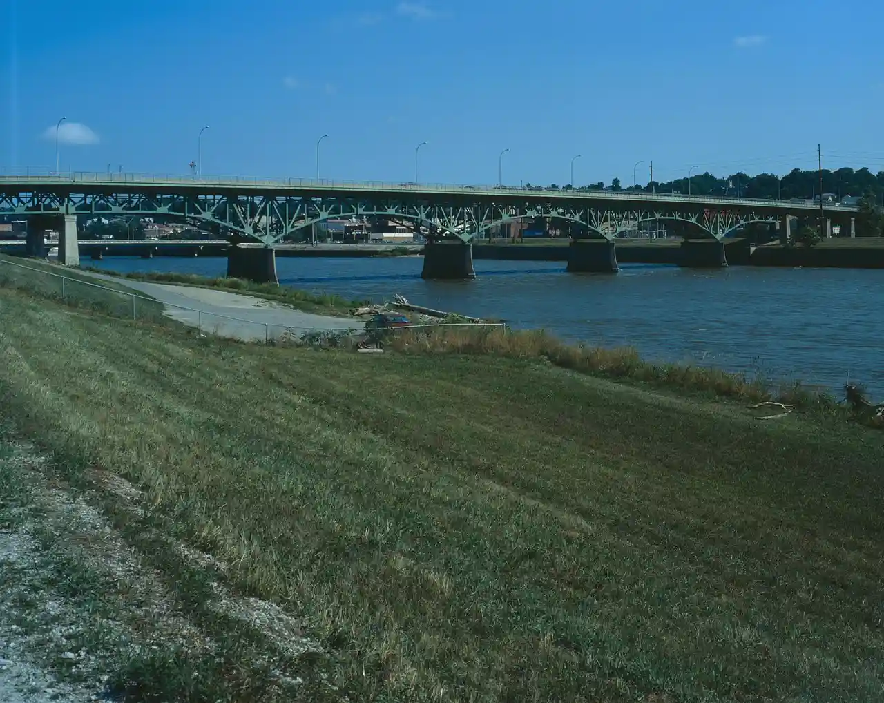 The Jefferson Street Viaduct is an historic structure located in Ottumwa, Iowa, United States. The riveted Warren deck truss bridge was completed in 1936. It was listed on the National Register of Historic Places in 1998 as a part of the Highway Bridges of Iowa MPS. Read more on Wikipedia
