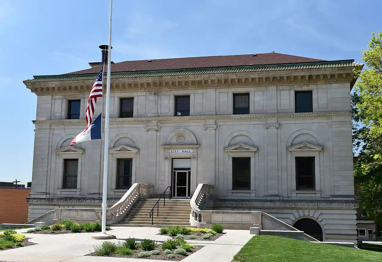 Ottumwa City Hall is the official seat of government for the city of Ottumwa, Iowa, United States. The building originally served as a post office and federal courthouse. It is part of the Central Park area, which includes: Ottumwa Public Library, Wapello County Courthouse and St. Mary of the Visitation Catholic Church. The building was listed on the National Register of Historic Places in 1976. Read more on Wikipedia