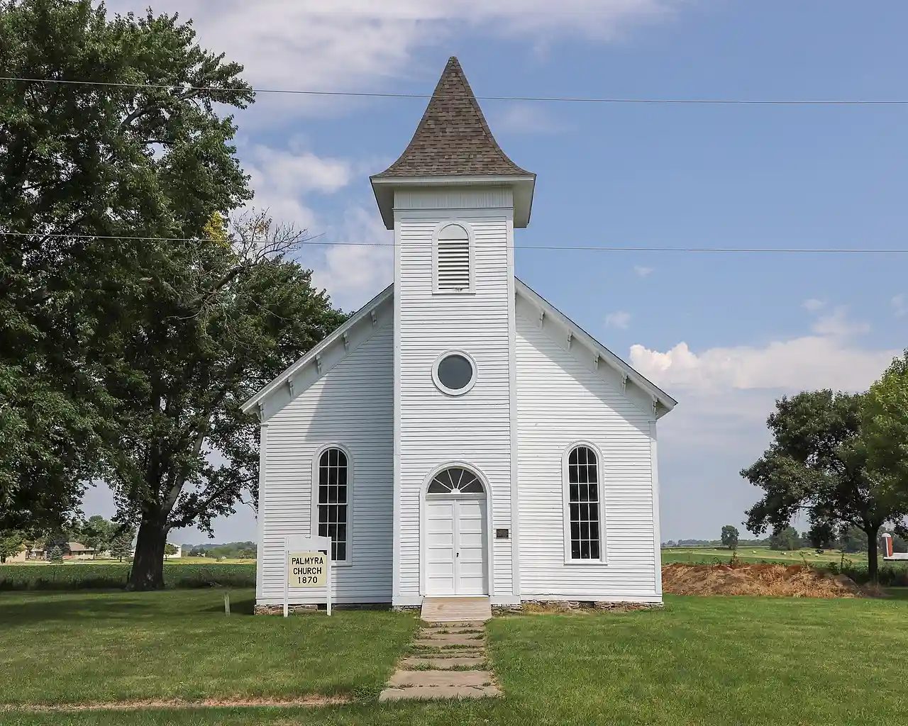 Palmyra Methodist Episcopal Church is a historic structure located in Palmyra Township, Warren County, Iowa, United States. It was built in 1868 and listed on the National Register of Historic Places in 1979. It is the only remaining original building in Palmyra Township. Read more on Wikipedia