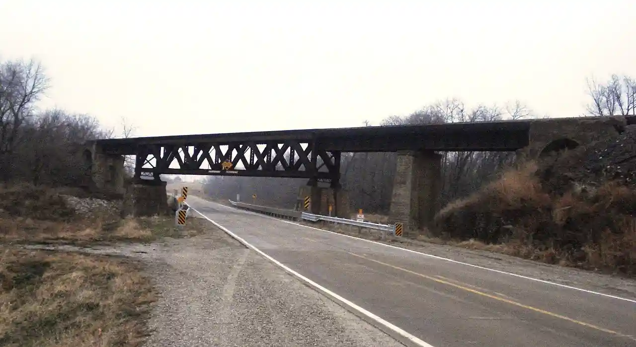 CM and StP Railroad Underpass is a historic structure located southwest of Washington, Iowa, United States. It was listed on the National Register of Historic Places in 1998. The Warren deck truss bridge is a rare example of this type of bridge in Iowa, and the oldest still in existence. Given the relatively flat nature of Iowa's rivers and streams this bridge type was rarely built in the state, and was mostly built for railroad use. This bridge, completed in 1903 by the Chicago, Milwaukee, St. Paul & Pacific Railroad (known as simply The Milwaukee Road), crosses a county highway bridge and the west fork of Crooked Creek. Read more on Wikipedia