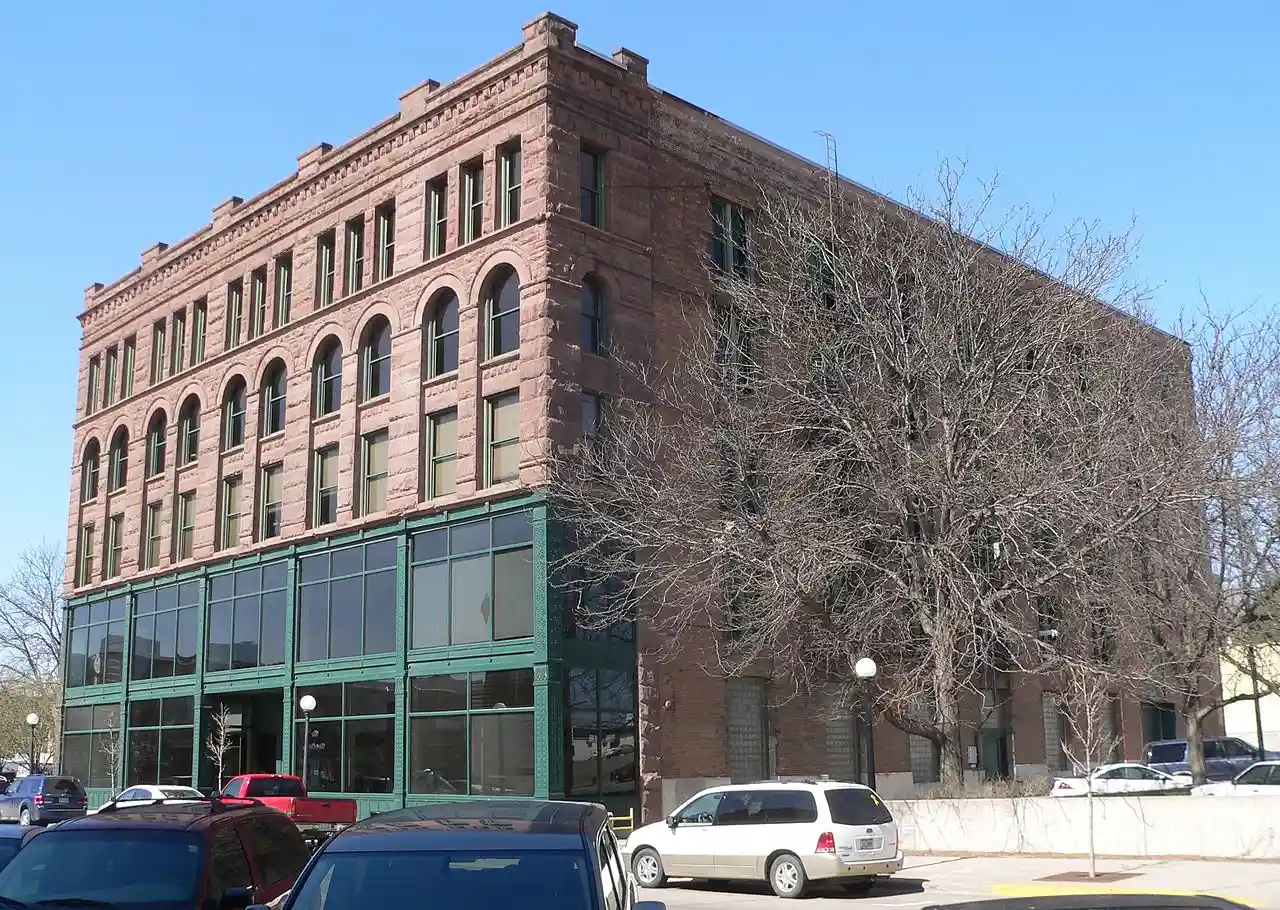 The Boston Block, also known as Aalfs Manufacturing Company, is a historic building located in Sioux City, Iowa, United States. The city experienced a building boom that began in the late 1880s and continued into the early 1890s. One of the major players in that building boom was the Boston Investment Company, a company on the East Coast who built four large commercial blocks in Sioux City simultaneously. with Construction on the four buildings began in 1890 and they were completed the following year. In addition to the commercial blocks, they also built a steam heating plant that provided steam and light to three of the buildings as well as to neighboring buildings. The Massachusetts Block (no longer extant) on the southwest corner of Fourth and Jackson was six stories tall and had a similar facade as the Boston Block, which is five stories tall on the northeast corner of Fourth and Virginia. The Plymouth Block on the southeast corner of Fourth and Locust was also five stories tall, and the Bay State Block on Fourth Street is the shortest at four stories. Among the building's tenants was the Aalfs Manufacturing Company, which used the building as its headquarters. Read more on Wikipedia