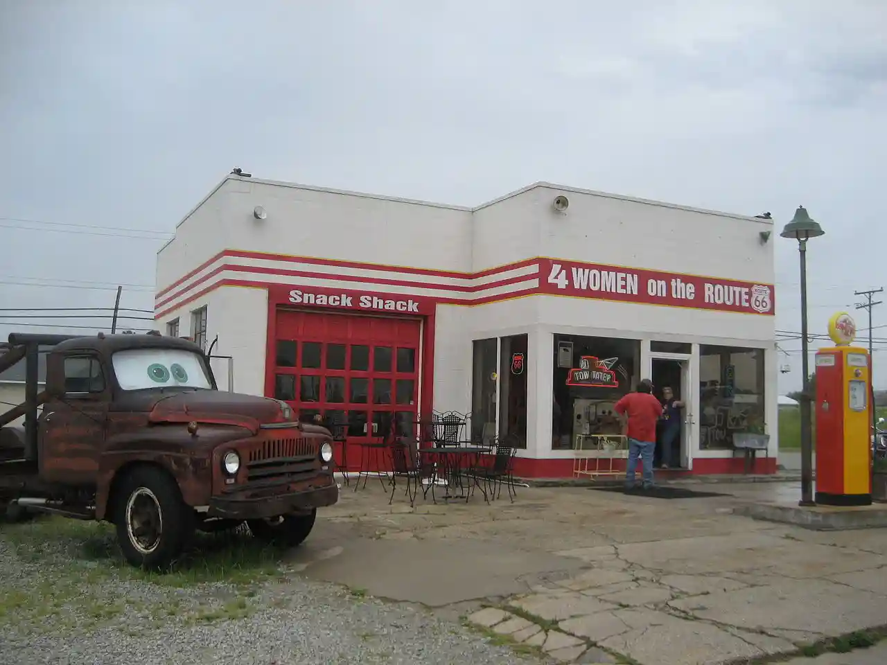 The Kan-O-Tex Service Station in Galena, Kansas, United States is a Kan-O-Tex filling station that originally served U.S. Route 66 motorists in 1934. Currently, it is a souvenir shop, snack bar, and tourist attraction. Read more on Wikipedia