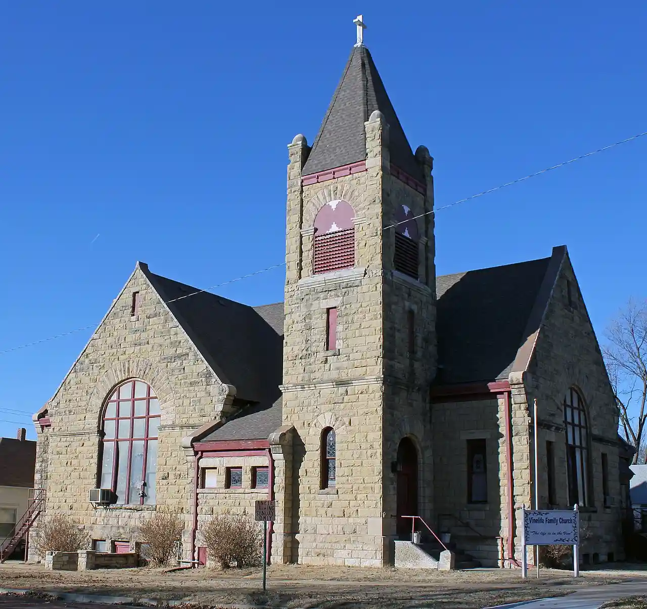 The Pilgrim Congregational Church in Arkansas City, Kansas is a Richardsonian Romanesque-style church at 101 N. Third Street. It has also been known as Church of the Nazarene. It was built during 1891-93 and was added to the National Register of Historic Places in 2005. Read more on Wikipedia