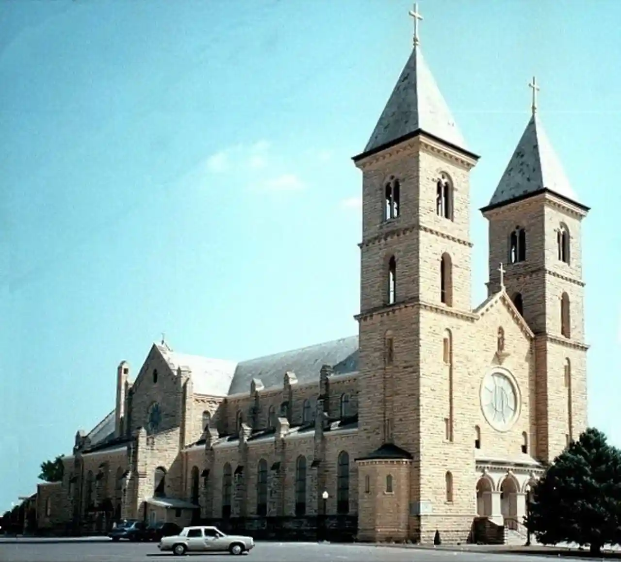 The Basilica of St. Fidelis, commonly known as the Cathedral of the Plains, is a Romanesque-style Roman Catholic parish church in Victoria, Kansas, United States. It was raised to the status of a Minor Basilica in 2014 and is also known as The Basilica of the Plains. The twin towers are 141 feet tall. Read more on Wikipedia