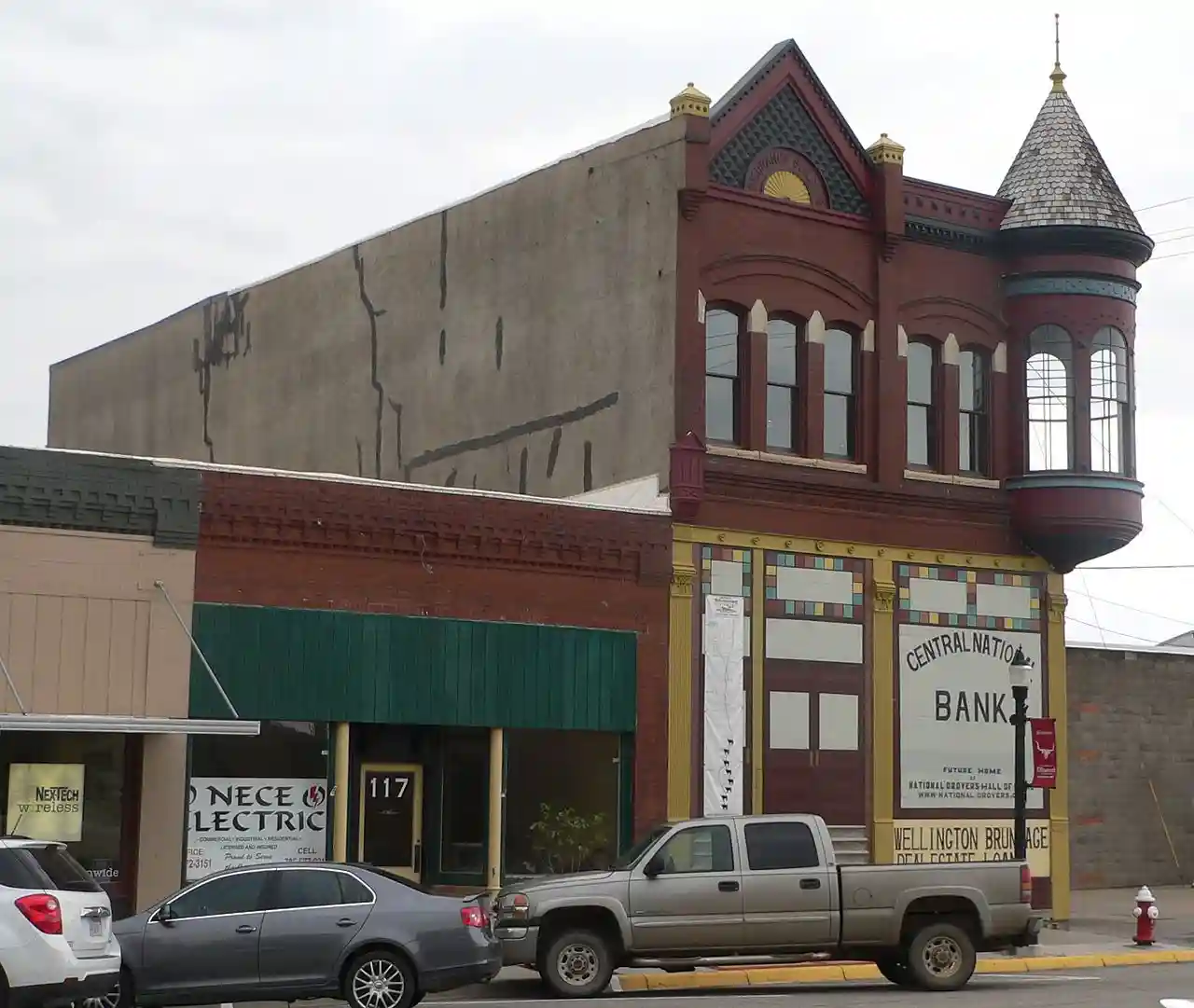 The Insurance Building in Ellsworth, Kansas, at 115 N. Douglas Ave., also known as the Wellington Insurance Building, is a two-story, Victorian-style brick commercial building. It was listed on the National Register of Historic Places in 2006. It is also a contributing building in the Ellsworth Downtown Historic District, which was listed on the National Register in 2007. With . Read more on Wikipedia