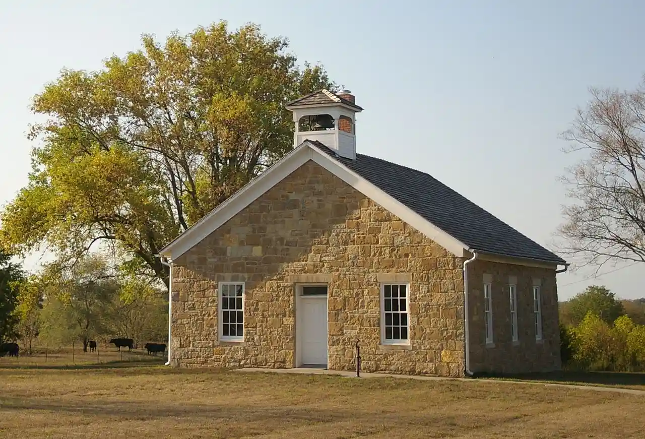 The Lanesfield School is a historic limestone one-room school in Edgerton, Kansas that operated as a school from 1869 to 1963. The school is an example of the one-room schoolhouses that served much of rural America during the nineteenth century, and it is the only remaining structure from the former town of Lanesfield, which served as a mail stop along the Pony Express and Santa Fe Trail. The school was converted into a museum in 1967. The school is located on the Lanesfield Historic Site that includes the schoolhouse, four outbuildings, and a modern visitors center. Read more on Wikipedia