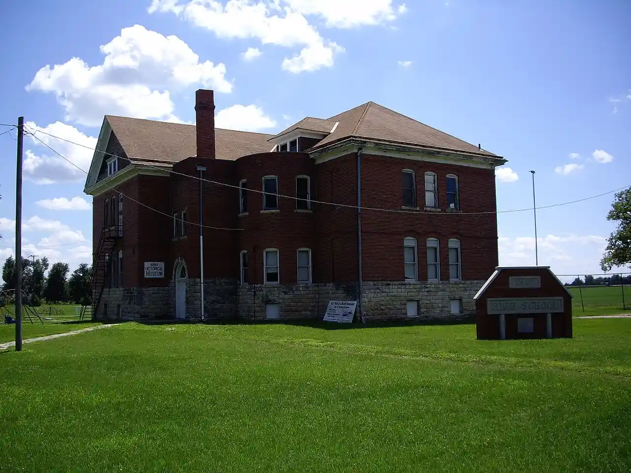 The Burns Union School at the SW corner of Ohio and Main Sts. in Burns, Kansas was built in 1904. It was a work of C.W. Squires and J.J. Clayton. In 1965, it closed as a result of statewide school district consolidation. It was listed on the National Register of Historic Places in 1975. Read more on Wikipedia