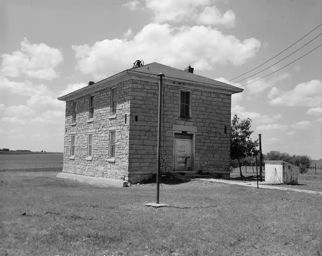The Old Albany Schoolhouse is a structure in Nemaha County, Kansas that was used as a school from the time of its construction circa 1866–67 to 1963. The school is one of the last remnants of the town of Albany, which declined after a railroad was built closer to the neighboring town of Sabetha. The school is a two-story rough limestone structure in the Plains Vernacular style. The corners are marked with quoins, and the school is covered by a hipped roof. After brief service as a church the school became the a museum in 1965, and now serves as the centerpiece of the Albany Museum complex. Other buildings include a railroad museum, windmill, caboose, antique automobiles, tractors and a 1950s period farmhouse. s Read more on Wikipedia