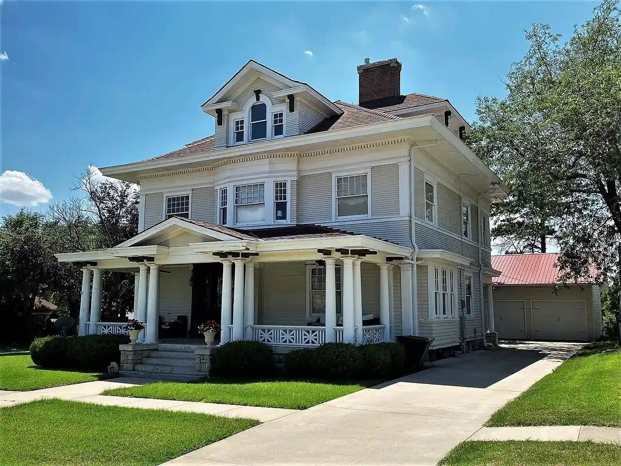 The S. P. Gebhart House, at 105 N. Iuka St. in Pratt, Kansas, is a foursquare house with Colonial Revival style that was built in c.1907-1910. It was designed and built by local contractor Harry Newton Duckworth. It was listed on the National Register of Historic Places in 1987. Read more on Wikipedia