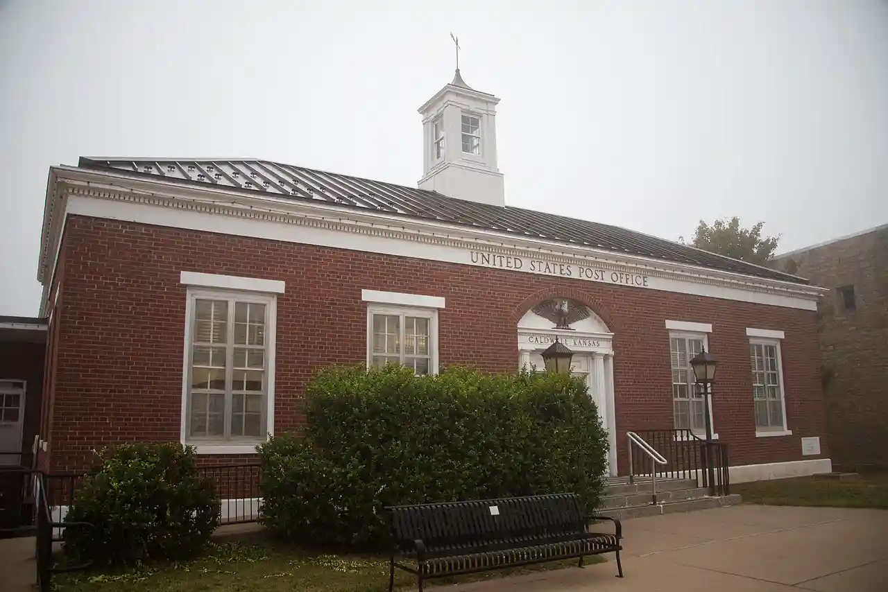 The Caldwell United States Post Office, located at 14 N. Main St. in Caldwell, Kansas, was listed on the National Register of Historic Places in 1989. It is Classical Revival in style and was built in 1941. Read more on Wikipedia