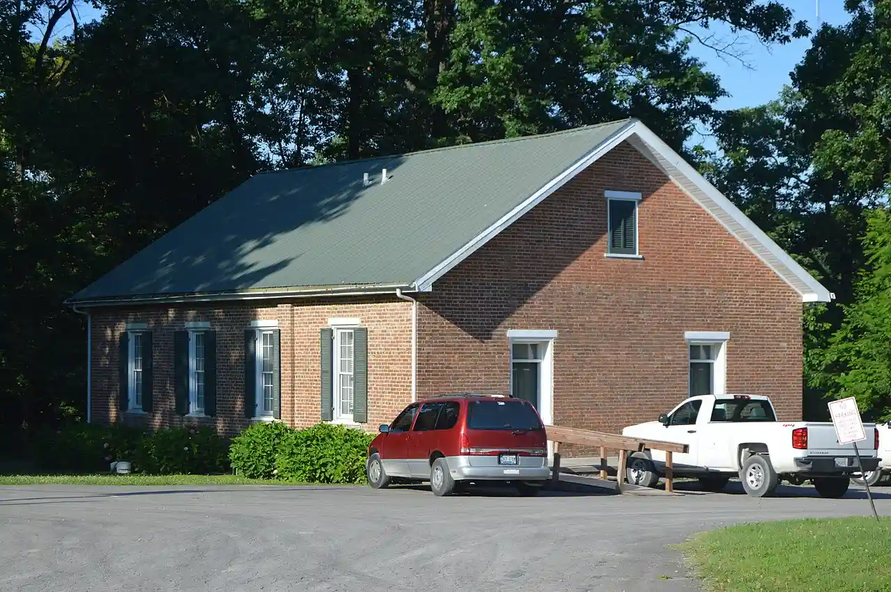 Zion Meetinghouse and School (also known as Zion Baptist Church and School) is a historic Baptist church about three miles south of Columbia, Kentucky. The congregation was formed in 1802 and a log meetinghouse was soon constructed. The current meetinghouse was built in 1837 out of locally made brick laid in Flemish bond on a stone foundation. After a fire, the building was reconstructed above the roofline in 1877. About 100 feet west of the meetinghouse, a two-story brick school was built in 1864, with a later frame addition at the entrance. The school was later used by the public school system. Read more on Wikipedia