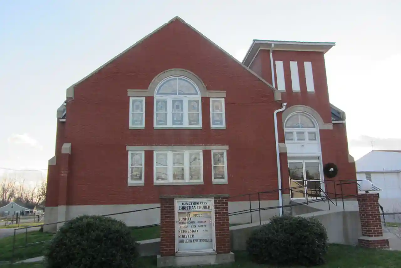 The First Christian Church in Junction City, Kentucky is a historic Christian churchhttps://crosslink.org/ at the junction of Shelby and Cemetery Streets. It was built in 1932 and added to the National Register of Historic Places in 1998. Read more on Wikipedia