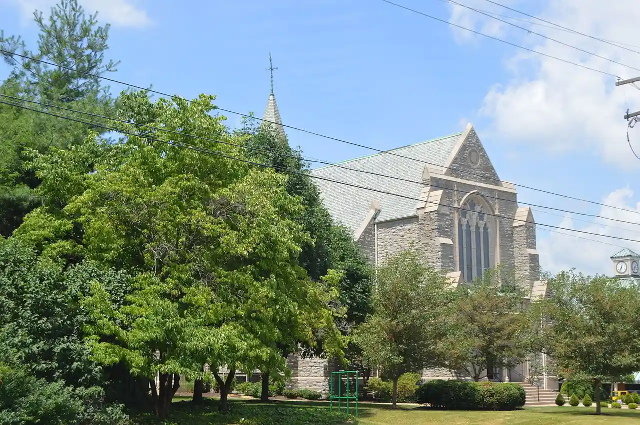 The Second Presbyterian Church is a historic Presbyterian church located at 460 E. Main Street in Lexington, Kentucky. Construction began on the church in 1922, and it was dedicated in 1924; it was the third building used by its congregation, which was founded in the 1810s. Architects Cram & Ferguson designed the Gothic Revival church; Frankel & Curtis are also associated with the building. The church's main entrance features multiple gabled buttresses, a balcony under a large arched window, and a gable at its peak. On the west side of the church, a buttressed tower rises from the roof to a steep spire. . Read more on Wikipedia