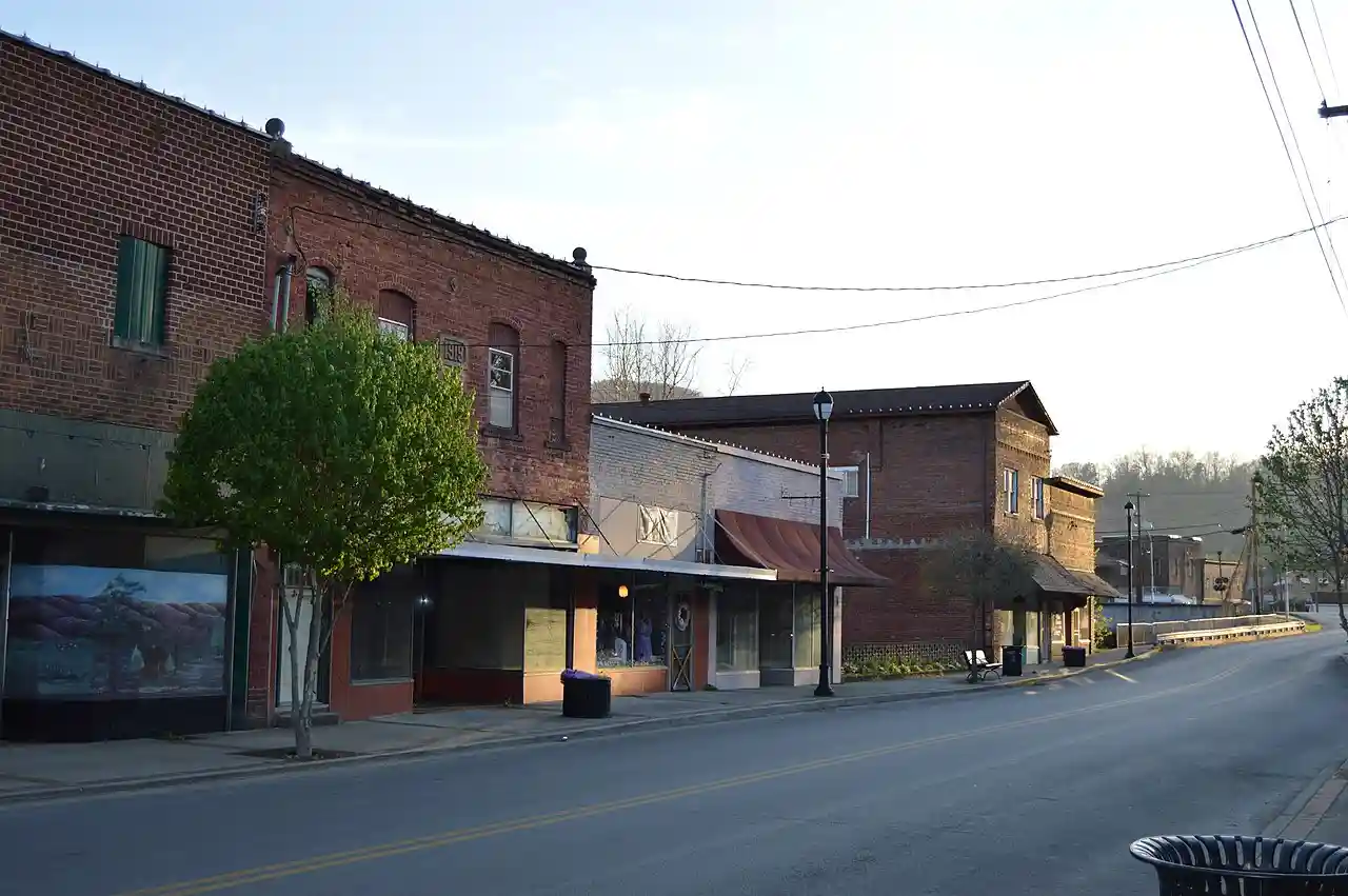 The Cumberland Central Business District is a commercial historic district in downtown Cumberland, Kentucky. While Cumberland was first settled in the 1820s, the district was developed during the area's coal mining boom of the 1910s and 1920s, which came after the Louisville and Nashville Railroad built lines through the region. Two of the largest mines in Harlan County, at Benham and Lynch, were near Cumberland; Benham and Lynch were company towns, however, which made Cumberland the closest commercial center independent of the mining companies. During this period, downtown Cumberland added a bank, a theater, a bus station, and many restaurants and specialty shops. The local coal industry declined dramatically during the Great Depression, and many of Cumberland's businesses closed as mining companies and their employees left the region. Accompanied by photos. Read more on Wikipedia
