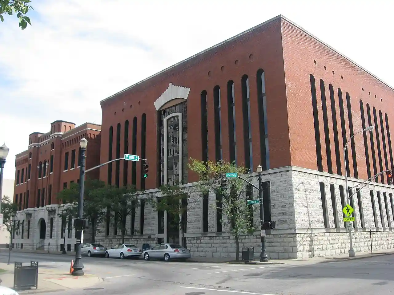 The Jefferson County Jail is a historic structure in central Louisville, Kentucky, United States. Built in 1905 in the Chicago style of architecture, it was designed by D.X. Murphy & Bros. It comprises two wings: the western, built as cell blocks, and the eastern, which originally housed offices. A system of corridors was used to separate male and female prisoners and black and white prisoners.Langsam, Walter E. National Register of Historic Places Inventory/Nomination: Jefferson County Jail. National Park Service, 1973-06-01. Read more on Wikipedia