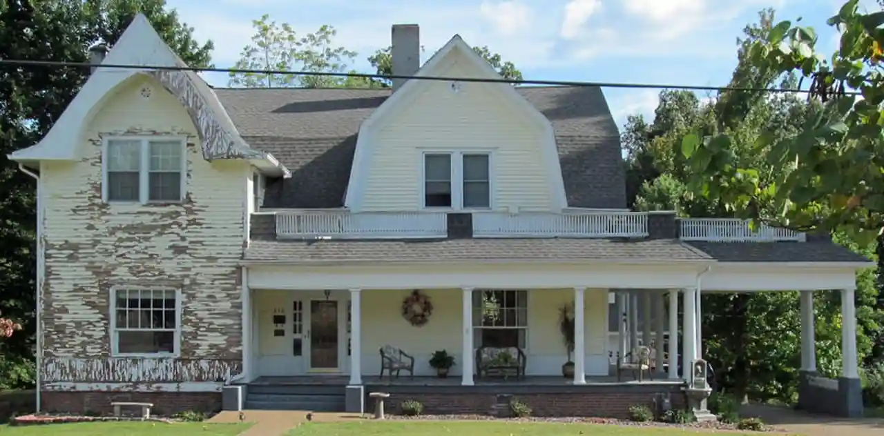 The Robert Thomas House is a historic house located at 516 Broad St. in Central City, Kentucky. The house was built in 1899 as a model home for an exhibit at the St. Louis World's Fair. Robert Y. Thomas and his family purchased the home and two other model homes from the display; the three homes were moved to Central City in 1904. Thomas, who later served in the U.S. House of Representatives, lived in the house, which he considered the "nicest of the three", until 1917. The Dutch Colonial Revival home features a gambrel roof, a front porch supported by Tuscan columns, and a balustrade along the roof of the porch. It is the only extant Dutch Colonial Revival building in Central City. Read more on Wikipedia