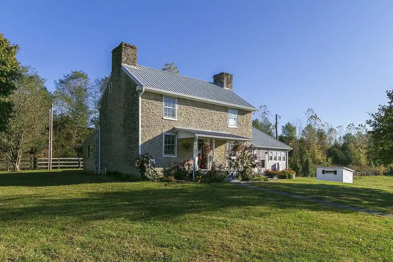 The Fryer House is a historic two-story stone house located in Butler, Kentucky. It was built by Pendleton County, Kentucky pioneer Walter Fryer in 1811. Abraham Vastine, a housebuilder, built this house of limestone from an adjacent quarry, and it has walls two feet thick. The roof truss system is built of wood framing held together with wooden pegs. The home was not completed until 1813. Read more on Wikipedia