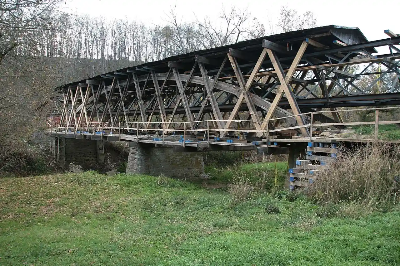 The Johnson Creek Covered Bridge is located four miles north of Blue Licks Battlefield State Park in Robertson County and is currently closed to vehicular traffic. The bridge is important as the only known example of Robert Smith's truss system in Kentucky and the only covered bridge extant known to have been built by Jacob N. Bower (1819-1906). Read more on Wikipedia