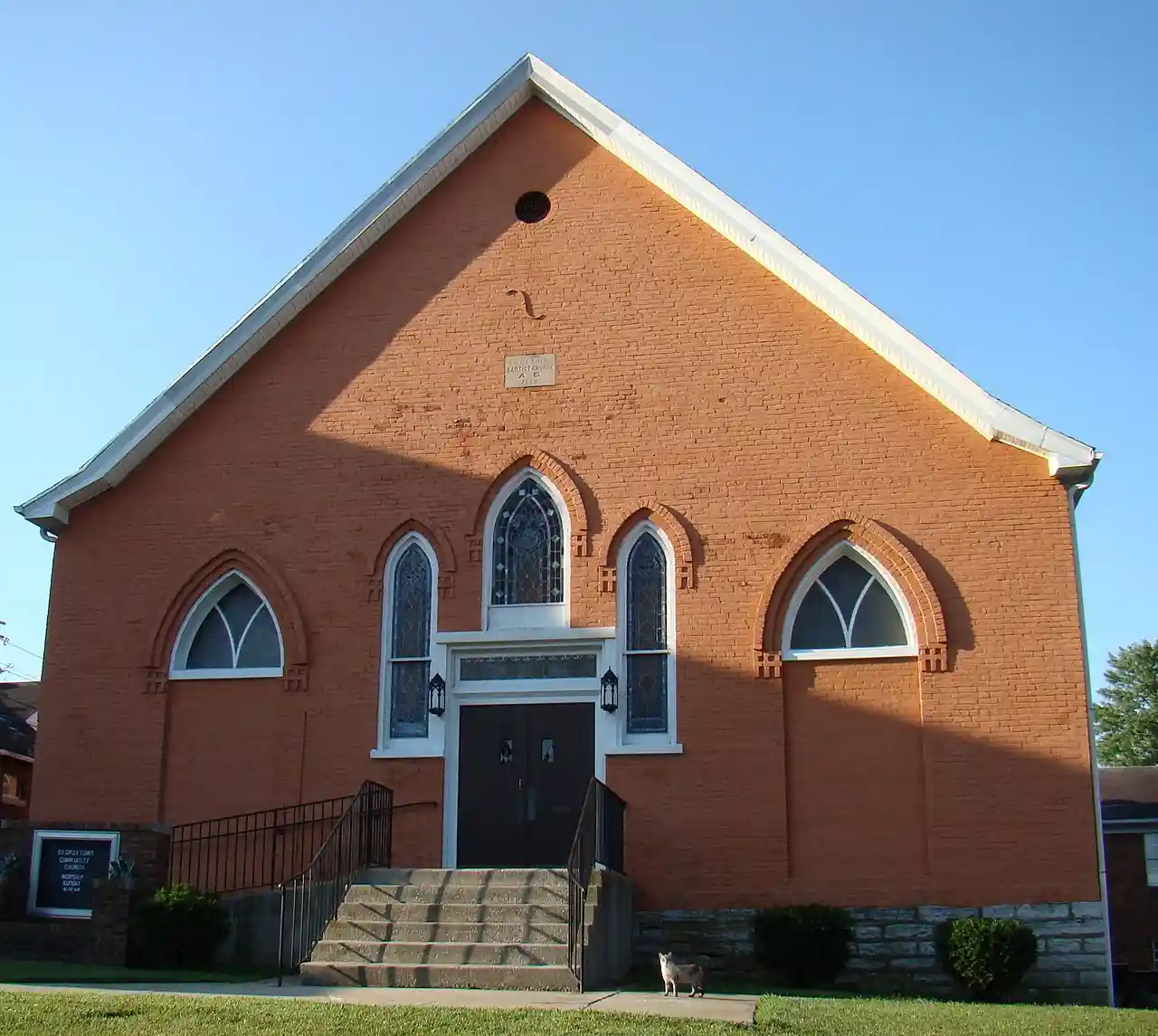 First African Baptist Church and Parsonage is an historically significant church building and an associated parsonage located in the United States on West Jefferson Avenue in Georgetown, Kentucky. In 1842, First Baptist Church moved from their West Jefferson location to a site closer to Georgetown College on College and Hamilton Streets. The church's previous building and property were leased to local black Baptists so a new congregation solely for blacks could be formed. The current building was constructed in 1870. The buildings were added to the U.S. National Register of Historic Places in 1984. Read more on Wikipedia