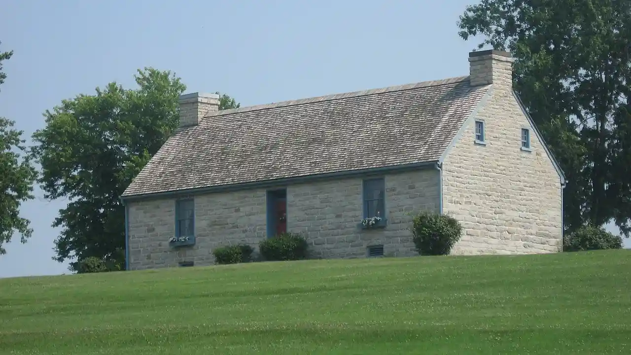 The Jacob Hiestand House, in Taylor County, Kentucky west of Campbellsville, Kentucky, was built from 1823 to 1825. It is one of 12 German stone houses surviving in the state, It was listed on the National Register of Historic Places in 1983. Read more on Wikipedia