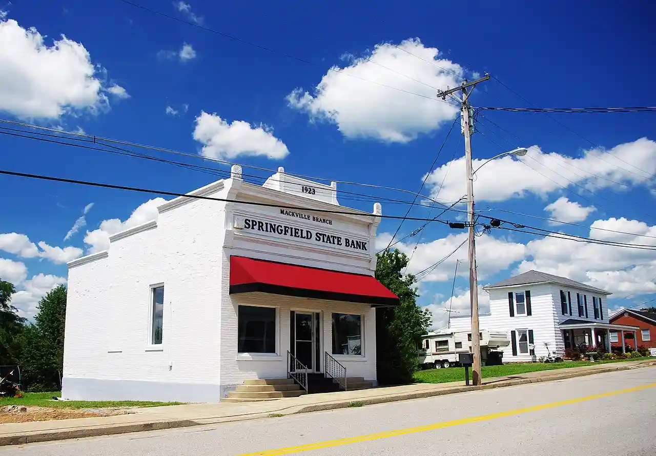 The Farmer's Bank of Mackville, on Kentucky Route 152 in Mackville, Kentucky, was built in 1923. It was later known as Springfield State Bank. It was listed on the National Register of Historic Places in 1989. Read more on Wikipedia