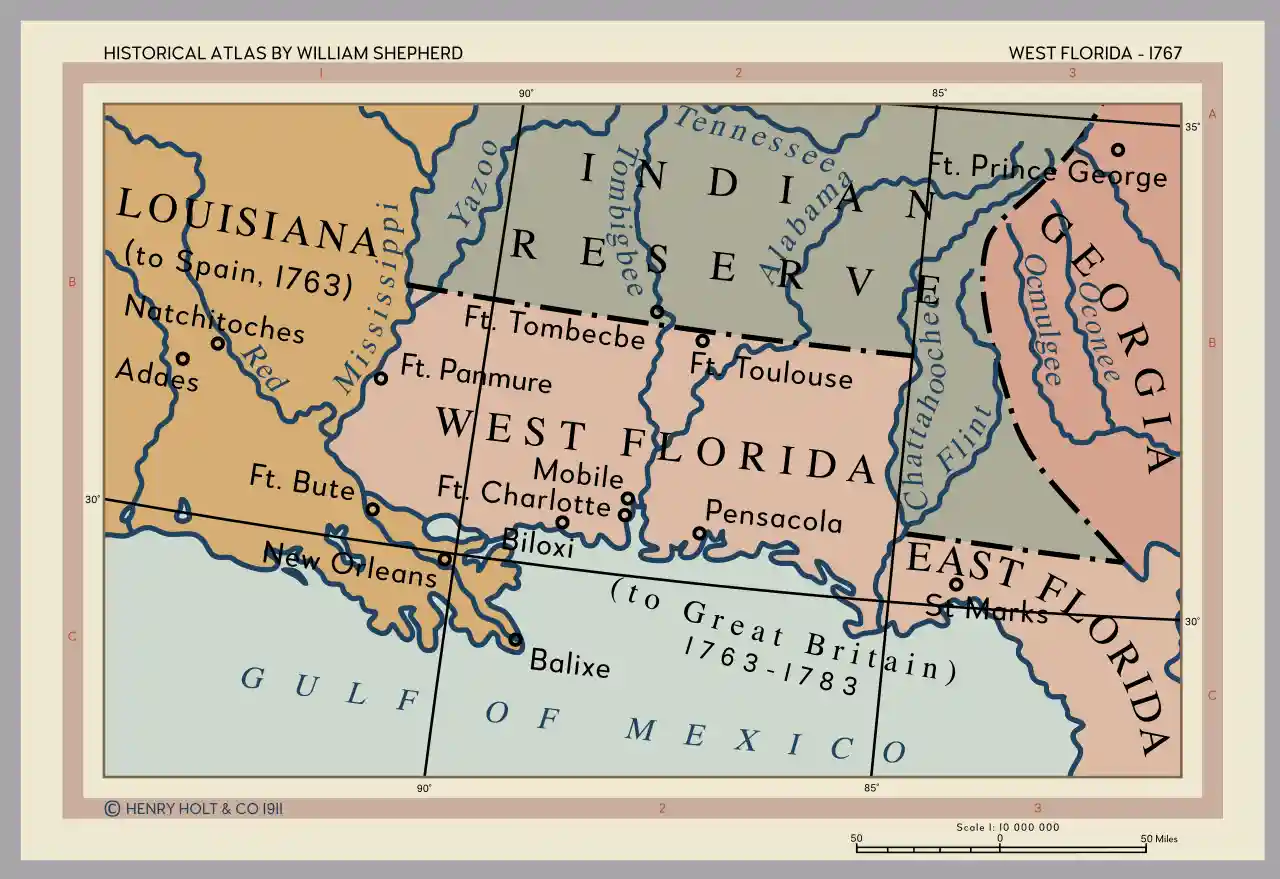 Fort Bute (1766–1779) was a colonial fort built by the British in 1766 to protect the confluence of Bayou Manchac with the Mississippi River and was named in honor of the Earl of Bute. Fort Bute was located on Bayou Manchac, about 115 miles (185 km) up the Mississippi River from New Orleans, on the far western border of British West Florida. It was one of the three outposts maintained by the British in the lower Mississippi along with Fort Panmure and the Baton Rouge outpost. Read more on Wikipedia