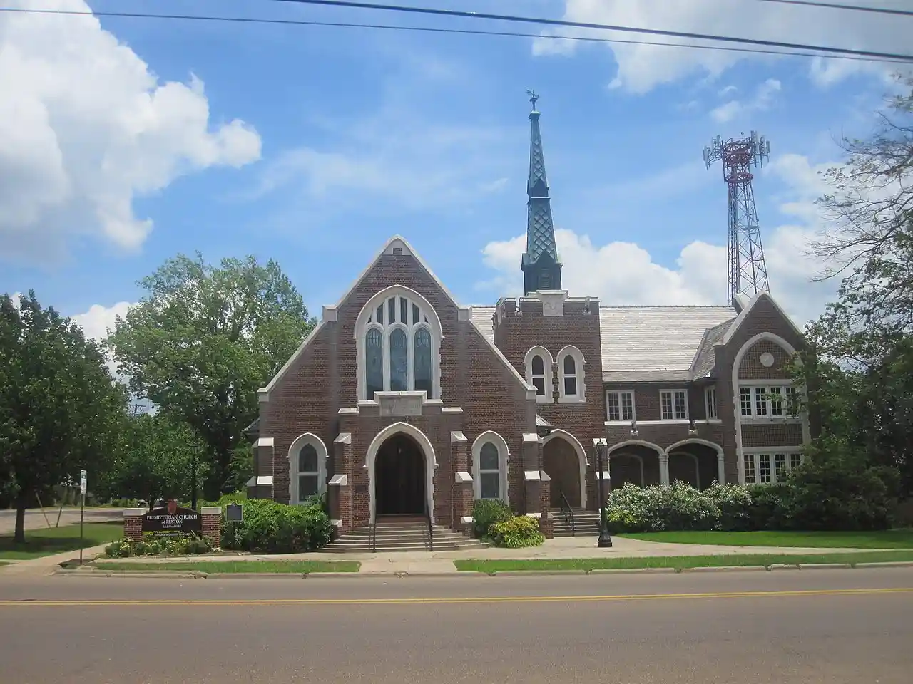 The First Presbyterian Church is a Late Gothic Revival-style basilica plan historic church located at 212 North Bonner Street in Ruston, Louisiana. Read more on Wikipedia